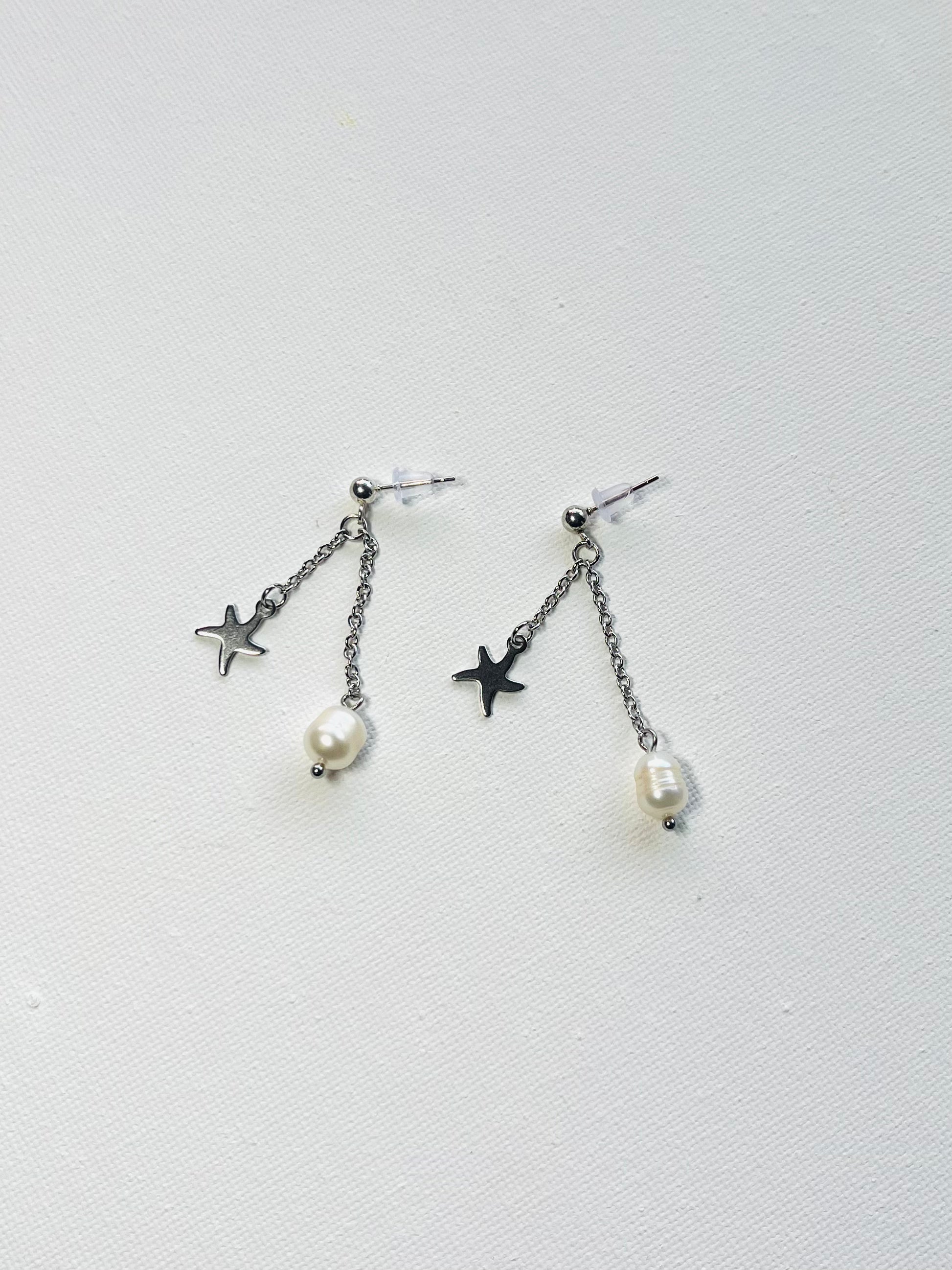 Pearl with coastal charm stainless steel earring.