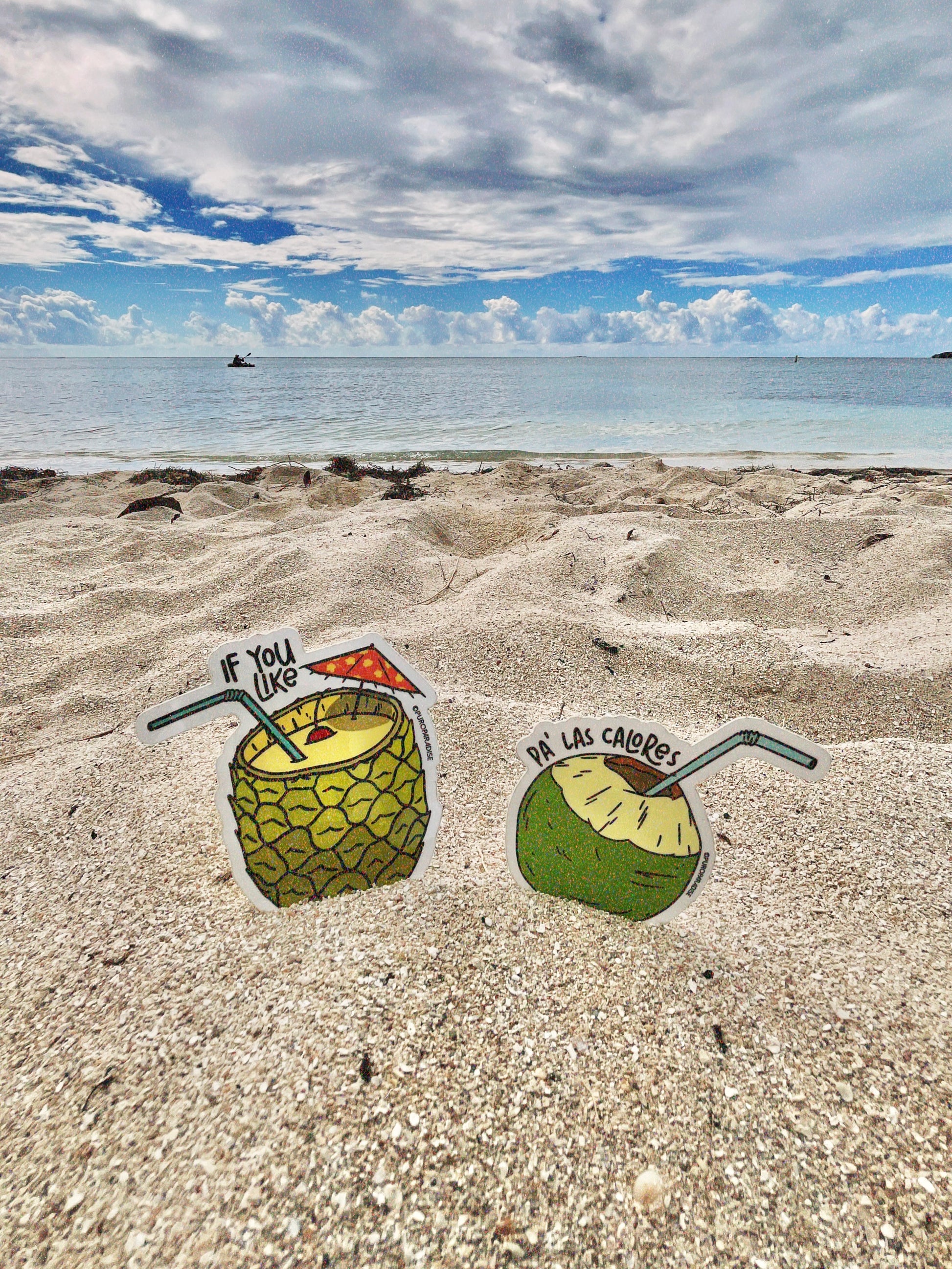Coco Frío sticker, inspired by the refreshing tropical coconut water drink. Perfect for placing on car, laptop, iPad, reusable bottle, and notebook.