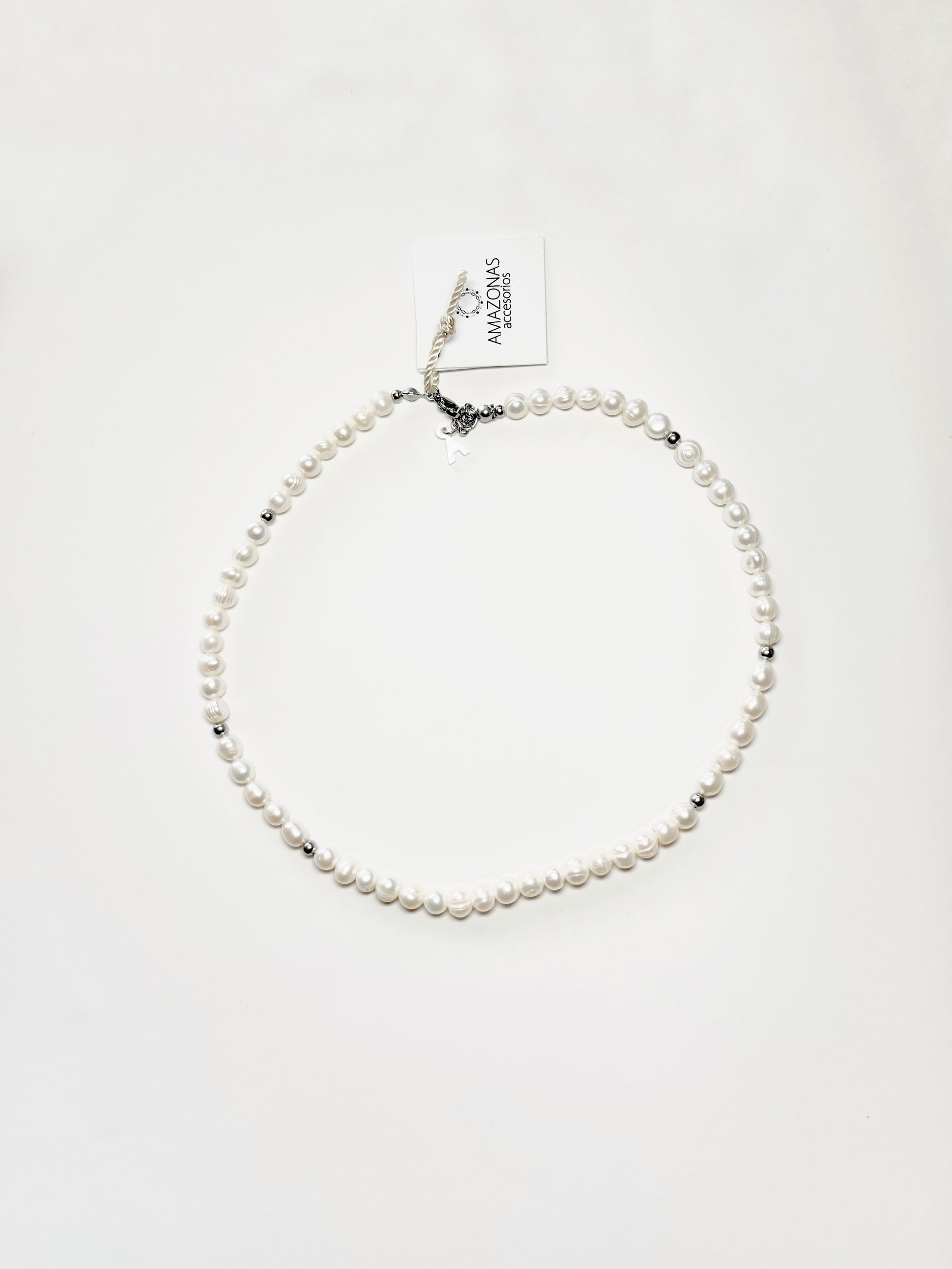 Real pearls, stainless steel necklace.
