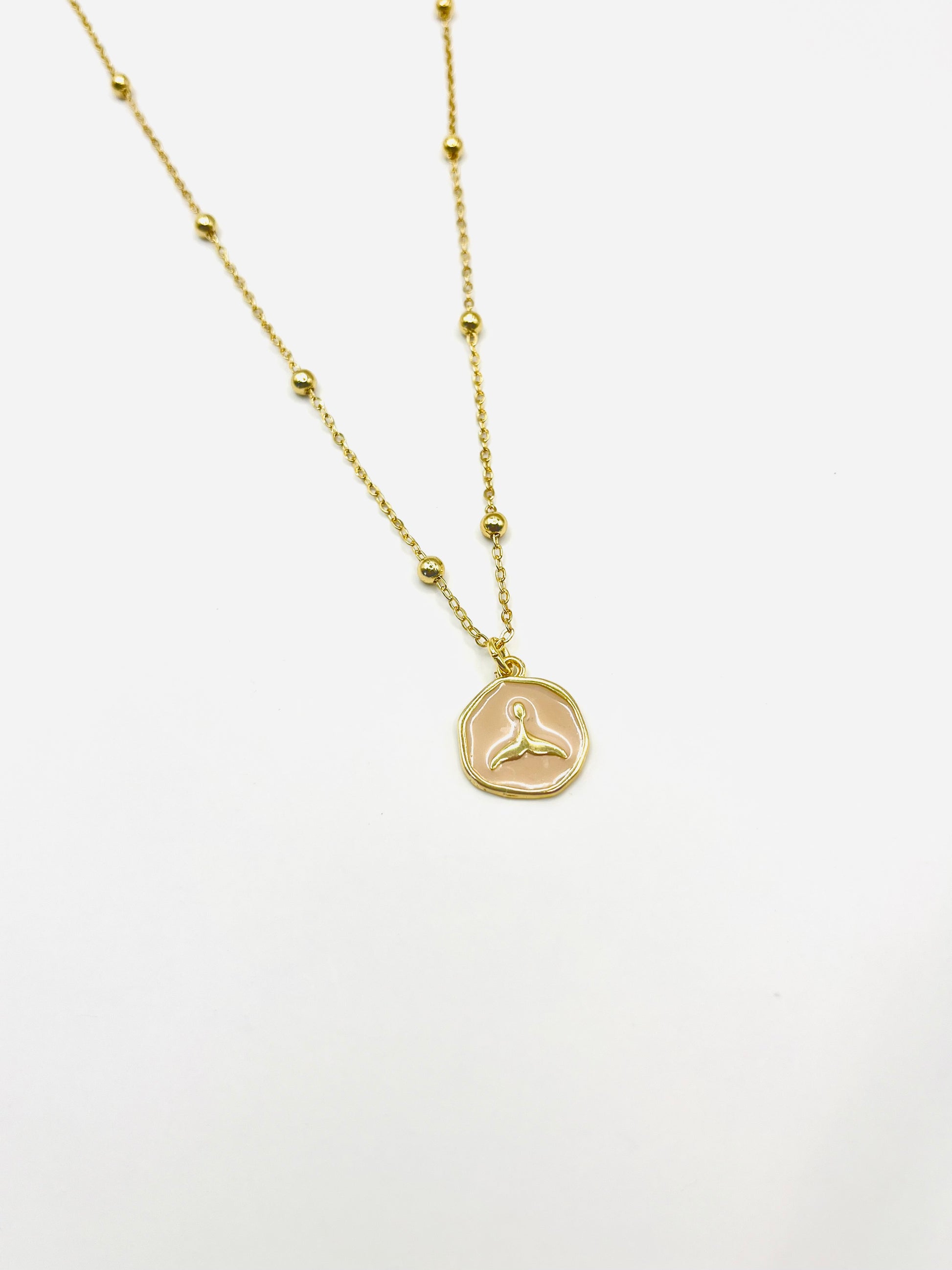 18k plated gold, bronze chain bead necklace with whale tale charm.